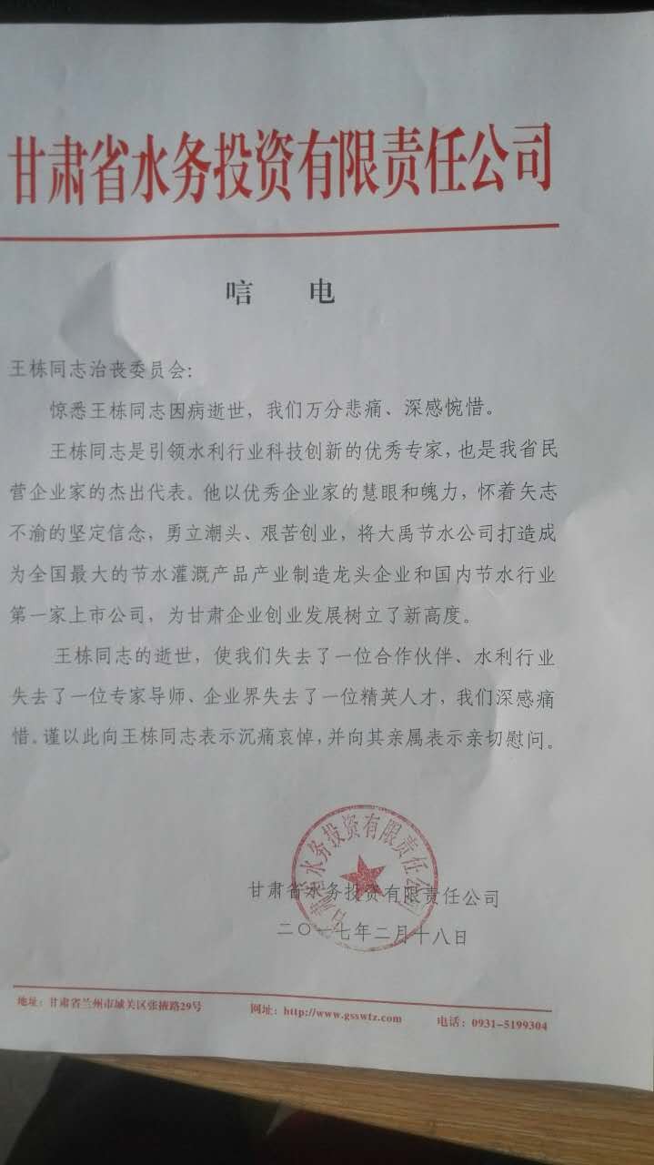 您當(dāng)前的位置: 網(wǎng)站首頁 > 各界人士沉痛悼念集團公司董事長王棟先生 > 各界人士沉痛悼念集團公司董事長王棟先生 >