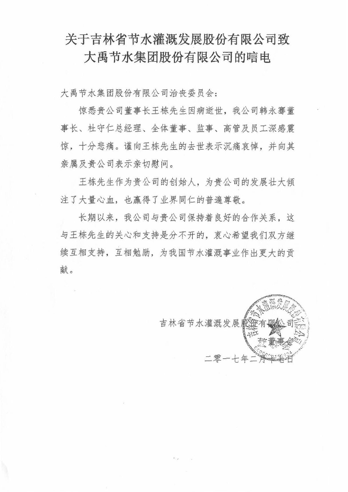 吉林省節(jié)水灌溉發(fā)展股份有限公司唁電