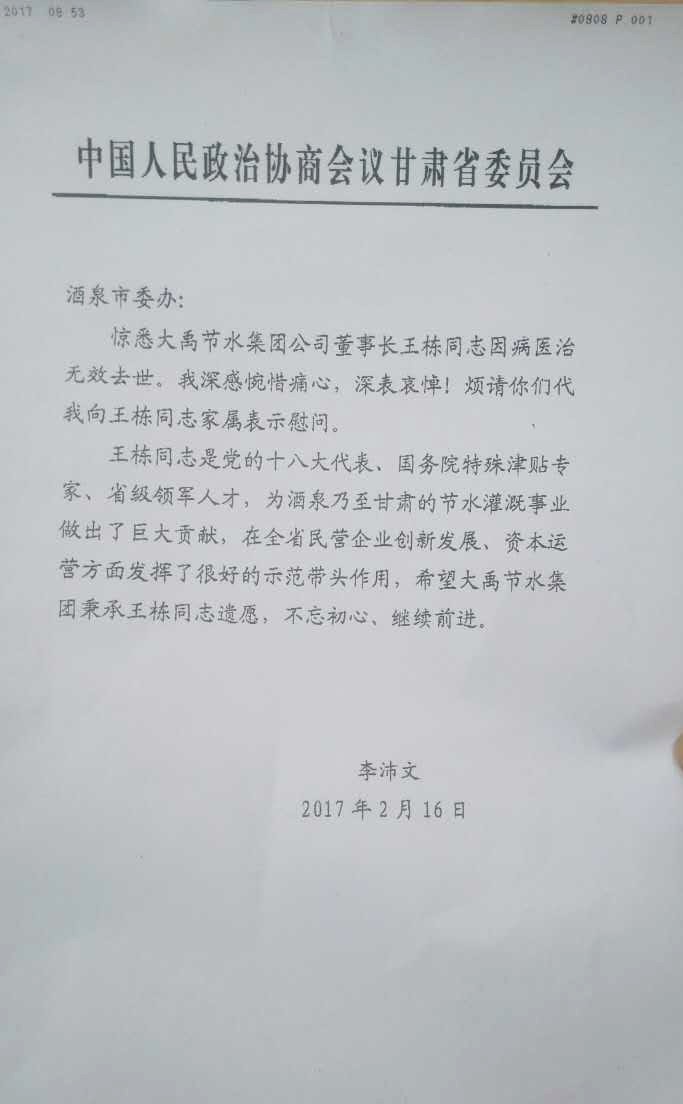 中國人民政治協(xié)商會議甘肅省委員會敬挽