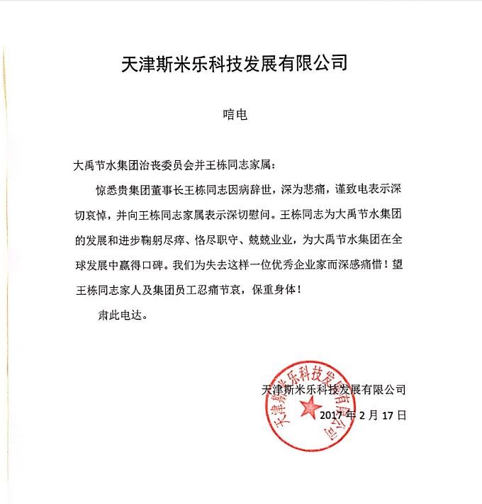 您當(dāng)前的位置: 網(wǎng)站首頁 > 各界人士沉痛悼念集團(tuán)公司董事長(zhǎng)王棟先生 > 各界人士沉痛悼念集團(tuán)公司董事長(zhǎng)王棟先生 >