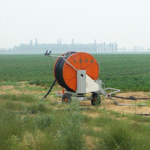 卷盤式噴灌機是一種將牽引PE管纏繞在絞盤上,利用噴灌壓力水驅(qū)動水渦輪旋轉(zhuǎn),經(jīng)變速裝置驅(qū)動絞盤旋轉(zhuǎn),拉動噴頭車移動和噴灑的灌溉設(shè)備。