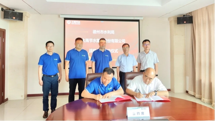8月21日,山東省德州市水利局與大禹節(jié)水集團(tuán)股份有限公司在大禹節(jié)水天津總部簽署戰(zhàn)略合作協(xié)議。德州市水利局三級(jí)調(diào)研員董書芳與大禹節(jié)水集團(tuán)華北總公司董事長(zhǎng)張戰(zhàn)祥代表雙方簽約,德州市水利局黨組書記、局長(zhǎng)李守學(xué),集團(tuán)公司總裁謝永生出席并見證簽約。