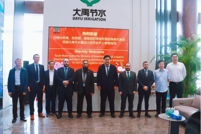9月26日,沙特水務(wù)局、投資部等政府高級商務(wù)代表團(tuán)蒞臨大禹節(jié)水集團(tuán)北京研發(fā)中心考察座談,大禹節(jié)水集團(tuán)董事長王浩宇等陪同。