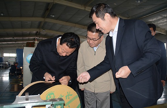 路志強(qiáng)檢察長一行首先聽取了大禹節(jié)水集團(tuán)公司關(guān)于"兩聯(lián)系、兩促進(jìn)"工作開展情況;隨后,路志強(qiáng)檢察長一行來到公司展廳,詳細(xì)了解了公司發(fā)展歷程及榮譽(yù)資質(zhì)等相關(guān)情況,并現(xiàn)場觀摩了大禹智慧水務(wù)信息智能化灌溉系統(tǒng)操作演示過程;路志強(qiáng)檢察長、康軍書記及都偉市長對公司取得的發(fā)展成績及榮獲的"國家科學(xué)技術(shù)進(jìn)步二等獎"、"中國質(zhì)量獎提名獎"及"全國先進(jìn)基層黨組織"等榮譽(yù)給予充分肯定與高度評價(jià);最后,路志強(qiáng)檢察長一行來到公司滴灌生產(chǎn)車間,邊走邊看,并不時(shí)與公司總裁謝永生交流,詳細(xì)了解公司滴灌管(帶)等各類節(jié)水灌溉產(chǎn)品生產(chǎn)工藝及應(yīng)用情況。
