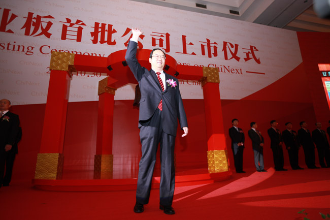 大禹節(jié)水股份有限公司董事長王棟在創(chuàng)業(yè)板首批公司上市儀式上