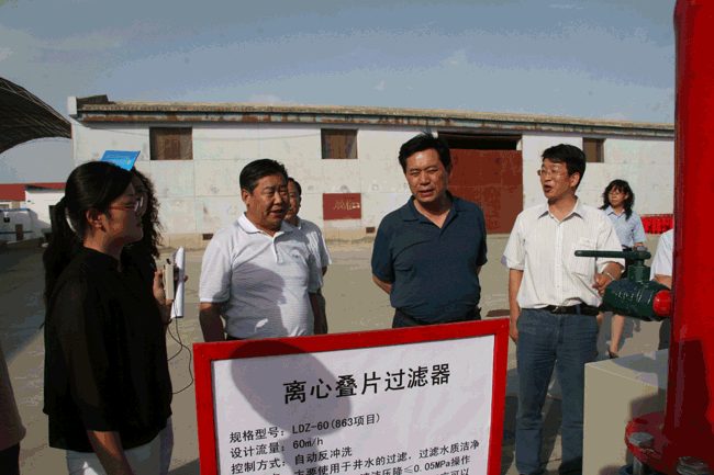 王曉東司長、康國璽廳長王喜成市長一行參觀公司生產(chǎn)的過濾施肥產(chǎn)品