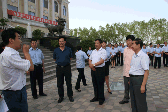 副董事長王沖在為王曉東司長、康國璽廳長、王喜成市長一行介紹公司基本情況