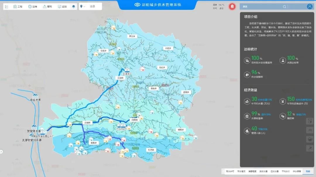 農(nóng)民飲水:鞏固脫貧攻堅成果,補足農(nóng)村基礎(chǔ)設(shè)施短板,“互聯(lián)網(wǎng)+人飲”提升鄉(xiāng)村生活品質(zhì),讓農(nóng)民更幸福——“大禹彭陽模式”。公司實施了寧夏回族自治區(qū)彭陽縣農(nóng)村飲水工程,從水源、泵站、蓄水池、管網(wǎng)到水龍頭全鏈條實施了自動化、智能化改造,徹底解決了4.3萬戶19萬人的農(nóng)村飲水安全問題,走出了“互聯(lián)網(wǎng)+農(nóng)村供水”的“投、建、管、服”新模式。2019年9月,水利部在寧夏召開農(nóng)村飲水安全工作推進會,與會領(lǐng)導一同深入彭陽縣,現(xiàn)場觀摩了農(nóng)村飲水工程全域化規(guī)劃、規(guī)范化建設(shè)、專業(yè)化管理、信息化服務、水費征收等情況,項目已在全國進行推廣復制。