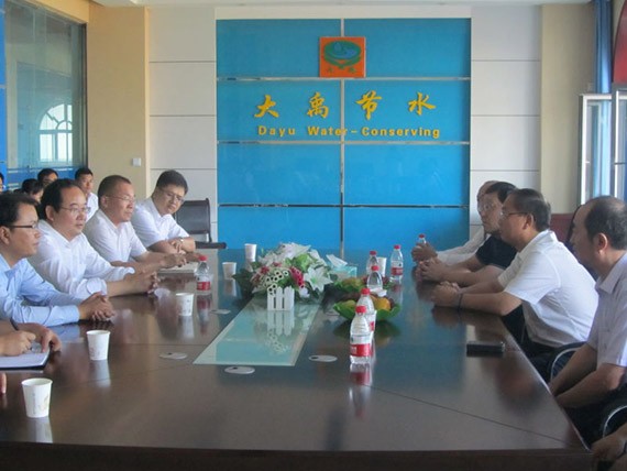 9月22日下午,甘肅省委統(tǒng)戰(zhàn)部副部長、甘肅省工商聯(lián)黨組書記、常務(wù)副主席趙少智,甘肅省工商聯(lián)副主席兼秘書長肖建勝一行五人在參加第五屆中國-亞歐博覽會(huì)期間蒞臨新疆大禹節(jié)水有限責(zé)任公司調(diào)研考察。集團(tuán)公司董事長王棟、財(cái)務(wù)總監(jiān)李福武、集團(tuán)公司副總裁徐希彬、新疆公司總經(jīng)理康海等陪同調(diào)研。