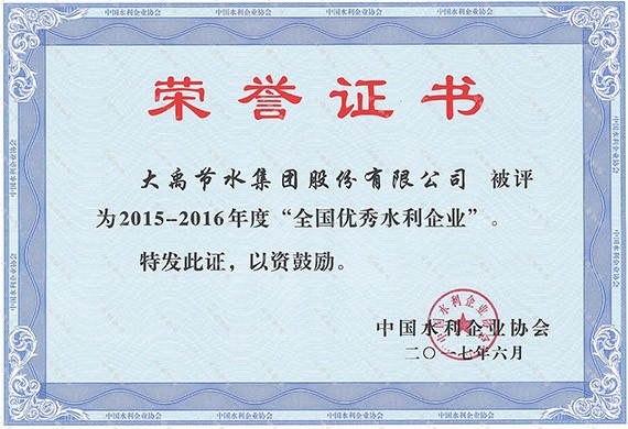 ▲大禹節(jié)水集團公司總裁謝永生榮獲"2015-2016年度全國優(yōu)秀水利企業(yè)家"榮譽