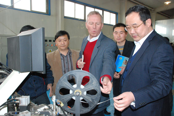 肯恩·伍茲先生一行聽取了“大禹節(jié)水”集團(tuán)公司董事長(zhǎng)王棟的情況介紹,觀看了“十年節(jié)水鑄輝煌”專題片,參觀了集團(tuán)總部、酒泉分公司生產(chǎn)車間和研發(fā)大樓,對(duì)“大禹節(jié)水”的經(jīng)營(yíng)管理和業(yè)績(jī)表示贊賞。美國(guó)托羅公司成立于1914年,總部位于美國(guó)明尼蘇達(dá)州明尼阿波利斯市,專業(yè)制造各種高爾夫球場(chǎng)、城市園林及農(nóng)業(yè)灌溉設(shè)備。托羅公司生產(chǎn)的園林灌溉產(chǎn)品以性能卓越、技術(shù)先進(jìn)著稱,一直是世界高爾夫球場(chǎng)、園林、運(yùn)動(dòng)場(chǎng)草坪維護(hù)及灌溉設(shè)備制造業(yè)的先鋒,經(jīng)歷近百年的奮斗與磨礪,托羅在高爾夫、園林、運(yùn)動(dòng)場(chǎng)領(lǐng)域已取得世人矚目的成績(jī),是世界500強(qiáng)企業(yè)。