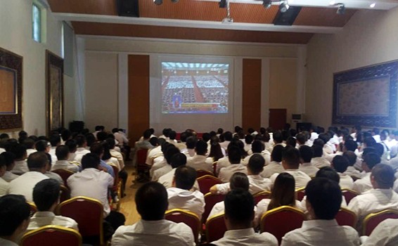 新任教育部部長(zhǎng)、黨組書(shū)記陳寶生與大禹節(jié)水集團(tuán)公司黨委書(shū)記、董事長(zhǎng)王棟在慶祝中國(guó)共產(chǎn)黨成立95周年大會(huì)現(xiàn)場(chǎng)