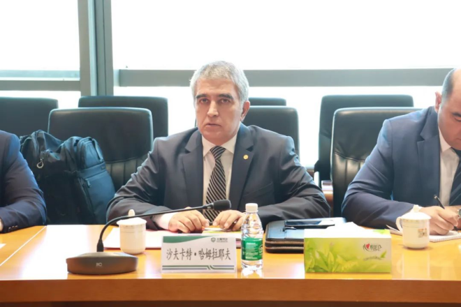 參加此次考察的還有烏茲別克斯坦共和國水利部改革辦主任朱拉耶夫·伊哈姆,烏茲別克斯坦共和國駐華大使館投資工業(yè)與貿(mào)易部代表處經(jīng)理帖穆爾別·尤斯波夫、秘書奧塔·奧貝德賈諾夫;大禹節(jié)水集團(tuán)設(shè)計(jì)集團(tuán)董事長嚴(yán)文學(xué)、大禹節(jié)水集團(tuán)慧圖集團(tuán)常務(wù)副總裁廖華軒等陪同座談。