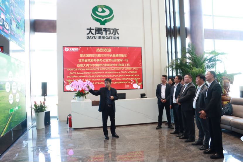 10月18日上午,蒙古國巴彥洪格爾市市長恩赫巴雅爾(Enkhbayar)、巴彥洪格爾市呼拉爾公民代表主席巴圖才仁(Battseren)、巴彥洪格爾輸電配電公司執(zhí)行董事烏蘭巴雅爾(Ulambayar);甘肅省政府外事辦黨組書記、辦公室主任張寶軍,省政府外事辦黨組成員、對外友協(xié)專職副會長梁保平,省對外友協(xié)友城工作處處長康廣宏一行領(lǐng)導蒞臨大禹節(jié)水集團北京研發(fā)中心考察座談,大禹節(jié)水集團黨委書記王沖等陪同。