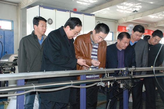 在公司滴灌車間詹市長一行詳細(xì)了解了滴灌管的生產(chǎn)流程
