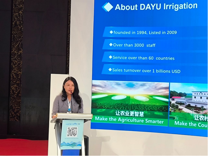 在演講中,王浩宇分享了在中國政府精心指導(dǎo)和有力推動下,中國節(jié)水產(chǎn)業(yè)從無到有的發(fā)展歷程,以及在此背景下大禹節(jié)水創(chuàng)立及發(fā)展的情況。在近30年的耕耘中,大禹節(jié)水總結(jié)提煉了一批可在全球復(fù)制、推廣的先進(jìn)機制模式和典型案例,打造了集項目投資、建設(shè)交付、運營管護(hù)、數(shù)字化、智能化為一體的全生命周期解決方案,大禹節(jié)水已具備為國際客戶提供一體化專屬定制方案的能力。立足本土,著眼全球,大禹的腳步不曾停歇,目前已在中亞、中東等地成立了分支機構(gòu),希望以在中國成功的節(jié)水實踐為基礎(chǔ),幫助更多的國家和地區(qū)實現(xiàn)節(jié)水增糧的目標(biāo),為我們共同的地球創(chuàng)造一個可持續(xù)發(fā)展的美好未來。