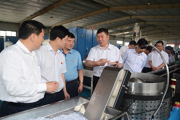隨后,調(diào)研組一行深入公司滴灌車間生產(chǎn)一線,實(shí)地調(diào)研了公司生產(chǎn)經(jīng)營(yíng)與產(chǎn)品研發(fā)等相關(guān)情況,并現(xiàn)場(chǎng)查看了酒泉公司黨員"三崗聯(lián)創(chuàng)"與"一卡雙制"管理看板,集團(tuán)公司總裁謝永生一一進(jìn)行了介紹和解答。調(diào)研組充分肯定了大禹節(jié)水集團(tuán)在非公黨建方面的各項(xiàng)工作,并高度評(píng)價(jià)了公司自主研發(fā)生產(chǎn)的各類現(xiàn)代化高效節(jié)水灌溉產(chǎn)品生產(chǎn)工藝以及新產(chǎn)品研發(fā)與創(chuàng)新等能力。同時(shí)希望大禹節(jié)水集團(tuán)在發(fā)展過程中,繼續(xù)以黨建為抓手,進(jìn)一步提升公司黨建與生產(chǎn)經(jīng)營(yíng)水平,爭(zhēng)當(dāng)非公經(jīng)濟(jì)黨建排頭兵,不斷促進(jìn)企業(yè)健康持續(xù)發(fā)展。