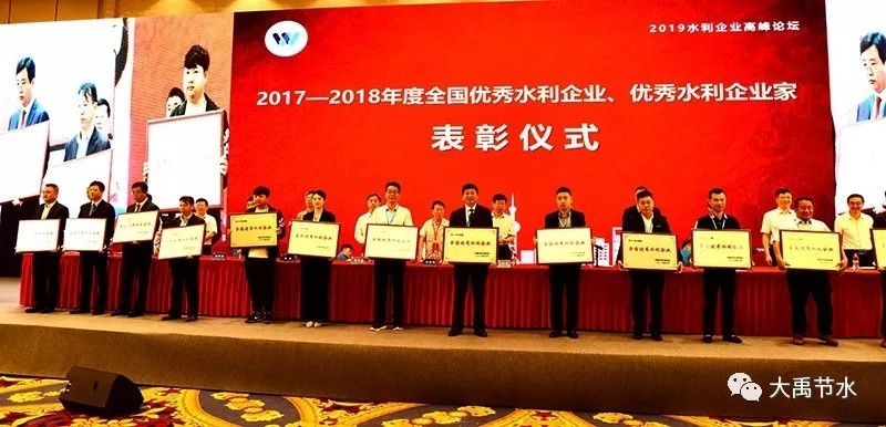 6月2日,由中國水利企業(yè)協會主辦的“2019水利企業(yè)高峰論壇”在上海富悅酒店盛大開幕。全國雙優(yōu)辦公室評選出了全國優(yōu)秀水利企業(yè)、優(yōu)秀水利企業(yè)家。大禹節(jié)水集團榮獲“2017—2018年度全國優(yōu)秀水利企業(yè)”,集團黨委書記王沖榮獲“2017-2018年度全國優(yōu)秀水利企業(yè)家”稱號,這已是大禹節(jié)水集團連續(xù)三屆獲得該項榮譽。