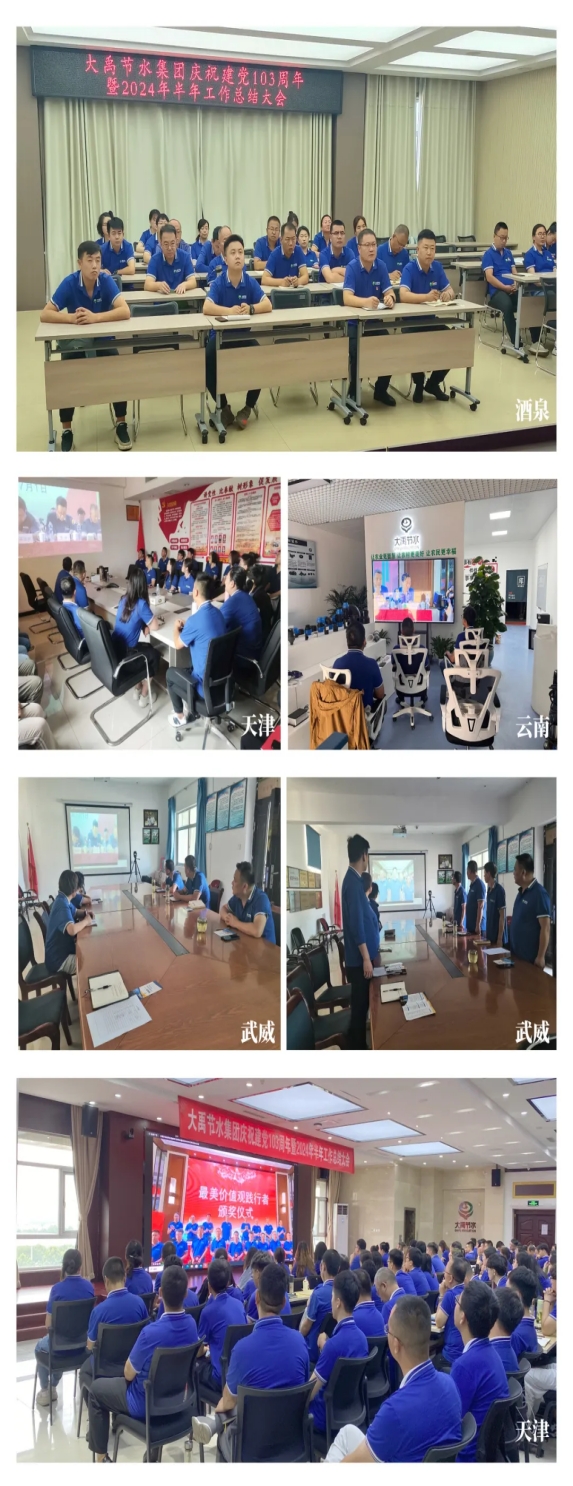 為慶祝中國(guó)共產(chǎn)黨建黨103周年,7月1日,大禹節(jié)水集團(tuán)在天津隆重召開慶祝建黨103周年暨2024年半年工作總結(jié)大會(huì)。大會(huì)在莊嚴(yán)的國(guó)歌中拉開序幕,集團(tuán)公司全體黨委委員、集團(tuán)高管、各板塊負(fù)責(zé)人及受表彰的先進(jìn)黨支部、優(yōu)秀共產(chǎn)黨員、各分會(huì)場(chǎng)近三千余名黨員干部、員工同步參加會(huì)議。