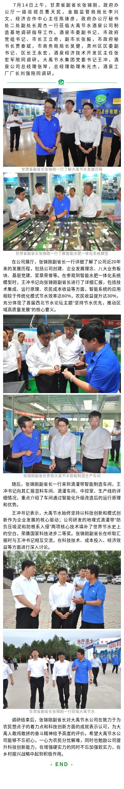 大禹動態(tài) | 甘肅省副省長張錦剛蒞臨大禹節(jié)水酒泉公司調(diào)研