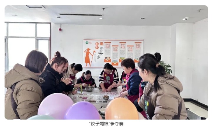 小巧的餃子,蘊含著溫馨與力量。餃子作為中國傳統(tǒng)美食,不僅承載著家的味道,更是情感的寄托和文化的傳承。在“餃子媚娘”爭奪賽、“創(chuàng)意果盤”大比拼和“喜怒哀樂”猜字游戲等環(huán)節(jié)中,大家熱情高漲,相互交流包餃子的小技巧,分享各自家鄉(xiāng)的風味做法,打破傳統(tǒng)包餃子的手法,發(fā)揮無限創(chuàng)意,制作出形態(tài)各異的創(chuàng)意餃子。現(xiàn)場氣氛溫馨而歡樂,每個人臉上都洋溢著幸福的笑容,歡聲笑語充滿了整個食堂。