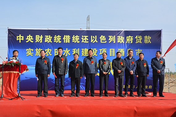 酒泉市水務(wù)局局長張貴虎在致辭中指出,中央財政統(tǒng)借統(tǒng)還以色列政府貸款實施農(nóng)田水利建設(shè)項目的開工,是實現(xiàn)"水資源合理利用和可持續(xù)發(fā)展"奮斗目標(biāo)而采取的一項具體措施,標(biāo)志著我市引進外國政府貸款進行農(nóng)業(yè)節(jié)水現(xiàn)代化的大幕已經(jīng)拉開,掀起了全市加快高效節(jié)水項目建設(shè)、實現(xiàn)節(jié)水農(nóng)業(yè)發(fā)展的新高潮。