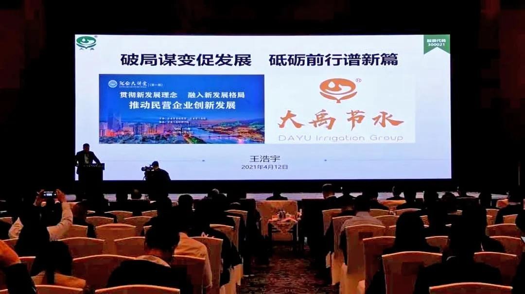 4月12日下午,由甘肅省委統(tǒng)戰(zhàn)部和甘肅省工商聯(lián)共同舉辦的第一期“隴企大講堂”在蘭開講,省委常委、省委統(tǒng)戰(zhàn)部部長、省政協(xié)黨組副書記馬廷禮出席并致辭,省委統(tǒng)戰(zhàn)部副部長、省工商聯(lián)黨組書記茍?zhí)旌曛鞒执笾v堂。大禹節(jié)水集團股份有限公司董事長王浩宇作為主講嘉賓出席,省工商聯(lián)副主席、副會長、執(zhí)(常)委,省工商聯(lián)“咨詢委員會”和“青年企業(yè)家委員會”成員,省工商聯(lián)直屬商會、商會聯(lián)席會成員單位負責人共計300余人共同參加。