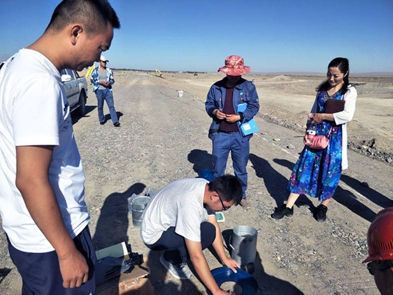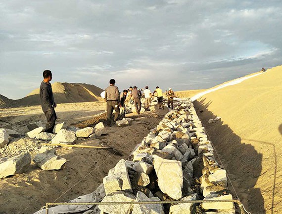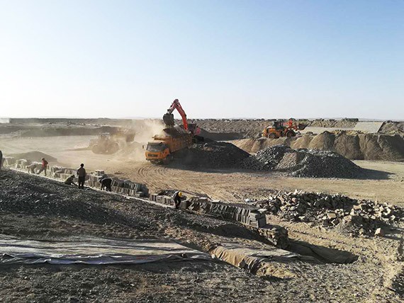 阿克塞抗旱應(yīng)急調(diào)蓄水庫工程從6月10日開工,通過三個半月的緊張施工,截止9月25日,共計完成壩基清理外運9.8萬m?,庫底清理外運23.9萬m?,砂礫石開挖外運43萬m?,壩體夯填18萬m?,混凝土預(yù)制磚完成4400m?,進(jìn)出水口管道焊接616m,墊層15000m?,細(xì)沙保護(hù)料鋪筑5166.59 m?,庫底篩分細(xì)砂保護(hù)料24000 m?,防滲膜鋪設(shè)63000㎡,完成供電設(shè)施77.7萬元,其他臨時建筑47.8萬元。目前壩體夯填及庫底清理、砂礫石開挖外運、壩體土工膜鋪設(shè)及墊層料鋪筑已全部完成,預(yù)制磚襯砌2000m?,共計完成投資2661.98萬元,預(yù)制磚襯砌及庫底土工膜鋪設(shè)工作正在抓緊進(jìn)行。