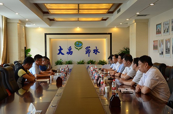 現(xiàn)場考察結(jié)束后,雙方進行了座談交流。大禹節(jié)水集團黨委書記王沖對青海省水投公司領(lǐng)導(dǎo)一行蒞臨大禹節(jié)水集團考察表示熱烈歡迎。王沖書記就公司基本情況及公司業(yè)務(wù)發(fā)展情況進行了介紹,重點介紹了公司在“三農(nóng)三水”方面取得的成績及PPP項目模式在全國的推廣建設(shè)情況。王沖表示,大禹節(jié)水集團以農(nóng)和水為中心,形成了以“農(nóng)業(yè)高效節(jié)水、農(nóng)民安全飲水、農(nóng)村污水處理”的產(chǎn)業(yè)格局,實現(xiàn)了全產(chǎn)業(yè)鏈覆蓋并取得了良好的社會效應(yīng)。大禹節(jié)水集團愿與青海省水投公司強強聯(lián)合,充分發(fā)揮雙方資源優(yōu)勢,互利共贏,共同開發(fā)青海水務(wù)事業(yè),為使農(nóng)業(yè)更智慧、農(nóng)村更美好、農(nóng)民更幸福做出應(yīng)有的貢獻。