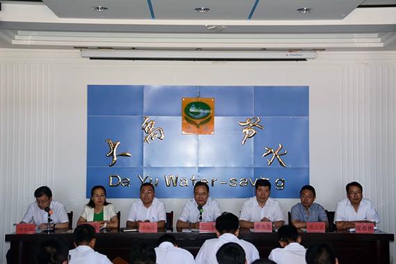 董事長(zhǎng)王棟向新入職大學(xué)生介紹了公司發(fā)展戰(zhàn)略規(guī)劃、經(jīng)營(yíng)發(fā)展布局、創(chuàng)新發(fā)展模式,從資本運(yùn)作層面,經(jīng)營(yíng)管理層面深入淺出地詳細(xì)介紹了公司的發(fā)展歷程和取得的輝煌成就,展望了公司發(fā)展前景和美好的未來(lái),并對(duì)新入職大學(xué)生提出了殷切希望。希望新入職大學(xué)生們能夠堅(jiān)定自己的職業(yè)選擇,拓展職業(yè)視野,腳踏實(shí)地,到業(yè)務(wù)一線去鍛煉,到公司需要的地方去建功立業(yè);希望新入職大學(xué)生能加快夯實(shí)業(yè)務(wù)基礎(chǔ),盡快的把理論知識(shí)和實(shí)際工作相結(jié)合起來(lái),以恒心和耐心,做好本職工作,快速成長(zhǎng);希望他們能盡快融入大禹,將個(gè)人價(jià)值觀和大禹文化完美結(jié)合,為節(jié)水灌溉事業(yè),為大禹走向世界,做出貢獻(xiàn),為創(chuàng)造大禹節(jié)水輝煌事業(yè)而努力奮斗。