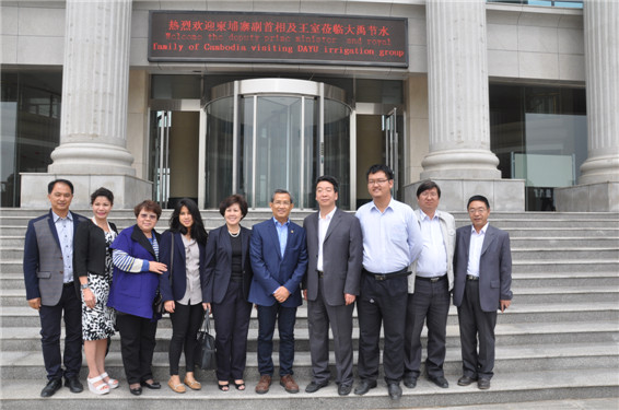 大禹節(jié)水(天津)有限公司董事長(zhǎng)王沖、天津大禹節(jié)水科技有限公司總經(jīng)理王浩宇與柬埔寨副首相一行合影留念
