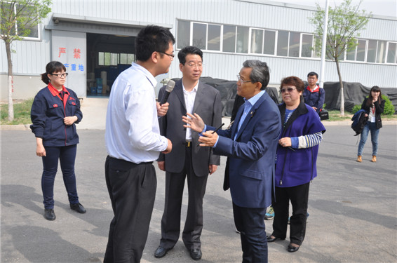 大禹節(jié)水(天津)有限公司董事長(zhǎng)王沖陪同柬埔寨國(guó)家副首相、奉辛比克黨主席蓋博拉斯美一行在滴灌帶車間參觀考察