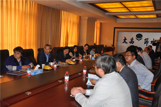 天津大禹節(jié)水科技有限公司總經(jīng)理王浩宇向柬埔寨副首相及王室一行介紹大禹節(jié)水公司自主研發(fā)生產(chǎn)的自動(dòng)化施肥過濾器設(shè)備