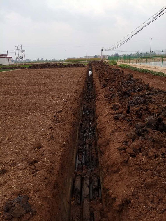 ▲管溝開挖,元謀PPP項目部同事兢兢業(yè)業(yè)一絲不茍,精算到毫米