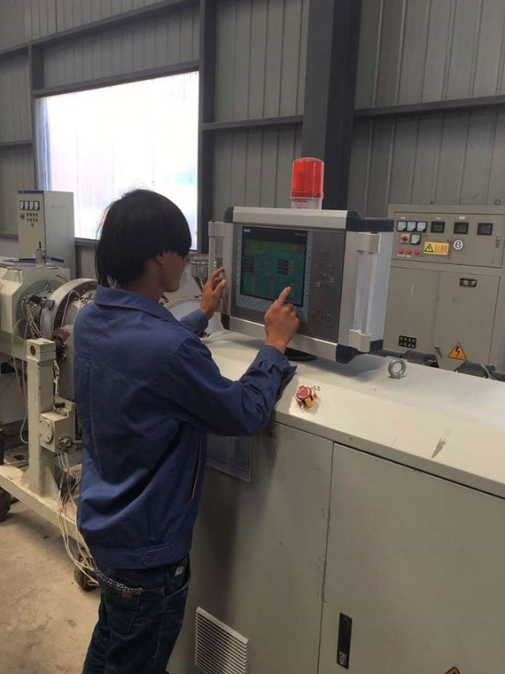 ▲生產(chǎn)工廠同事正在調(diào)試設備,力保生產(chǎn)把質(zhì)量,為工程一線同事提供充足的管材保障