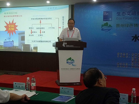 7月8日下午,"生態(tài)文明貴陽國際論壇2016年年會-水論壇"如期舉行,論壇由中國水利水電出版社黨委書記、社長湯鑫華主持。貴州省副省長劉遠(yuǎn)坤及銅仁市市長陳晏分別致辭。中國工程院院士、中國水利水電科學(xué)研究院、流域水循環(huán)模式與調(diào)控國家重點(diǎn)實(shí)驗(yàn)室主任王浩,中國科學(xué)院院士、武漢大學(xué)水資源專業(yè)教授夏軍,水利部國際合作與科技司原司長、中國水利水電科學(xué)研究院教授、博士生導(dǎo)師董哲仁,長江水利委員會長江流域水資源保護(hù)局副局長教授級高工楊永德,珠江水利委員會副總工程師胥加仕,中華水文化專業(yè)委員會副主任委員、水利部海河水委會紀(jì)檢組長靳懷培等專家領(lǐng)導(dǎo)分別做主題演講。中共十八大代表、大禹節(jié)水集團(tuán)董事長王棟在論壇上做了《社會資本參加節(jié)水型社會建設(shè)的實(shí)踐與探討》的主題演講,向與會專家領(lǐng)導(dǎo)詳細(xì)介紹了大禹節(jié)水集團(tuán)公司基本情況,重點(diǎn)介紹了云南陸良引入社會資本項(xiàng)目建設(shè)運(yùn)營情況及公司未來的發(fā)展戰(zhàn)略,并表達(dá)了進(jìn)入貴州市場參與水利工程建設(shè)的意愿。論壇最后,王棟代表全體參會人員宣讀了"生態(tài)文明建設(shè)與水資源開發(fā)利用----貴州宣言"。