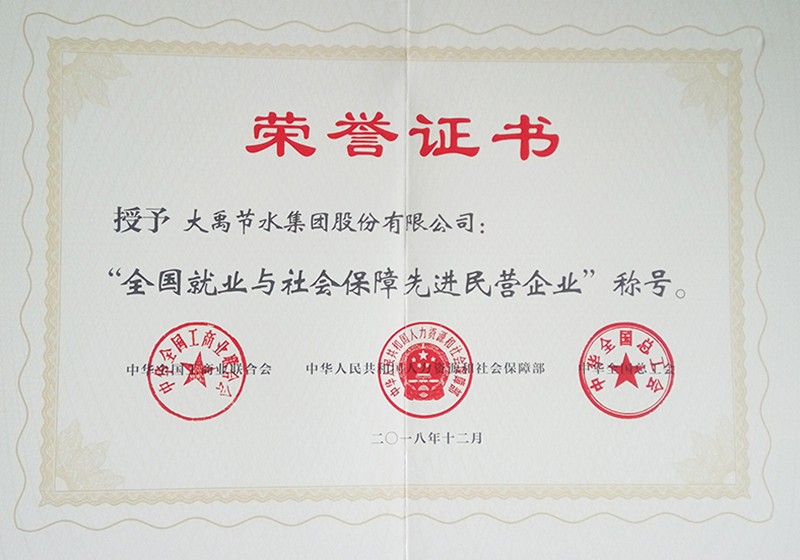 12月20日,全國就業(yè)與社會保障先進(jìn)民營企業(yè)暨關(guān)愛員工實(shí)現(xiàn)雙贏表彰大會在京召開。本次大會由全國工商聯(lián)、人力資源社會保障部、全國總工會三方聯(lián)合主辦。大禹節(jié)水集團(tuán)股份有限公司作為甘肅省唯一入選單位榮獲全國就業(yè)與社會保障先進(jìn)民營企業(yè)榮譽(yù)稱號,集團(tuán)公司黨委書記王沖代表公司參加大會并接受表彰。
