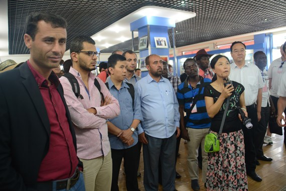 "2016年發(fā)展中國(guó)家干旱區(qū)水資源可持續(xù)發(fā)展研修班"的37名學(xué)員在大禹節(jié)水集團(tuán)展廳考察交流