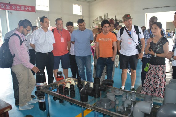 "2016年發(fā)展中國(guó)家干旱區(qū)水資源可持續(xù)發(fā)展研修班"學(xué)員在大禹節(jié)水集團(tuán)公司管件生產(chǎn)車間考察交流