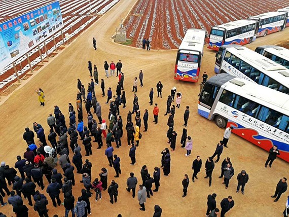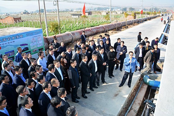 2月8日,大禹節(jié)水集團(tuán)公司多彩云南行業(yè)務(wù)考察學(xué)習(xí)團(tuán)現(xiàn)場(chǎng)考察了賓川縣東干渠6萬(wàn)畝高效節(jié)水灌溉項(xiàng)目建設(shè)情況。賓川縣人民政府副縣長(zhǎng)楊映紅現(xiàn)場(chǎng)向公司考察團(tuán)介紹了賓川縣高原特色農(nóng)業(yè)發(fā)展情況和全縣高效節(jié)水工作開(kāi)展情況;云南公司副總經(jīng)理張志國(guó)現(xiàn)場(chǎng)介紹了項(xiàng)目建設(shè)基本情況。集團(tuán)公司黨委書記王沖、董事長(zhǎng)王浩宇現(xiàn)場(chǎng)向大理州委常委、賓川縣委書記岳黎松,賓川縣人大常委會(huì)主任張成良及縣政協(xié)主席陳源等賓川縣四大班子領(lǐng)導(dǎo)匯報(bào)了項(xiàng)目建設(shè)情況。