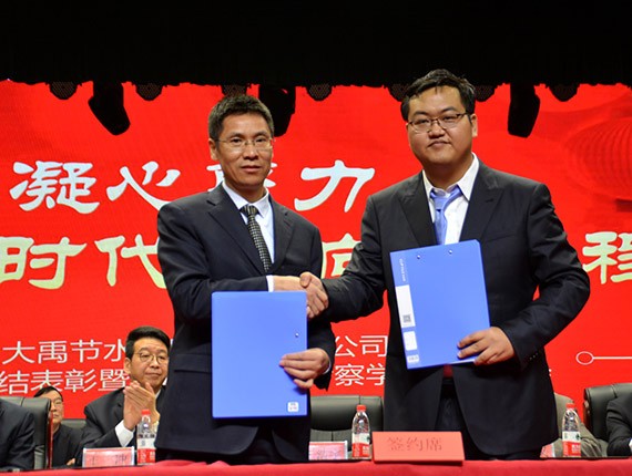 集團(tuán)公司董事長王浩宇與大禹研究院院長高占義簽訂2018年經(jīng)營承包合同