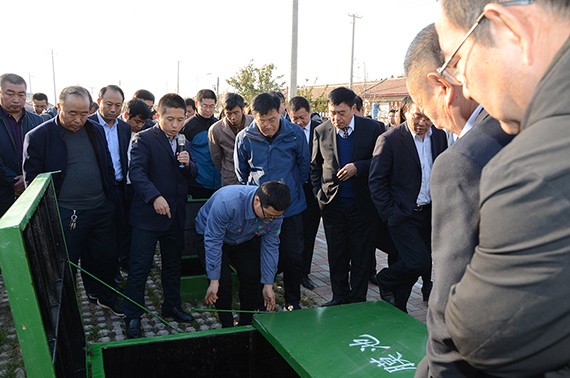 ▲與會(huì)領(lǐng)導(dǎo)和代表現(xiàn)場(chǎng)考察污水處理項(xiàng)目