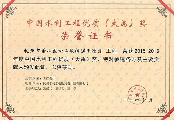 中國水利工程優(yōu)質(zhì)(大禹)獎