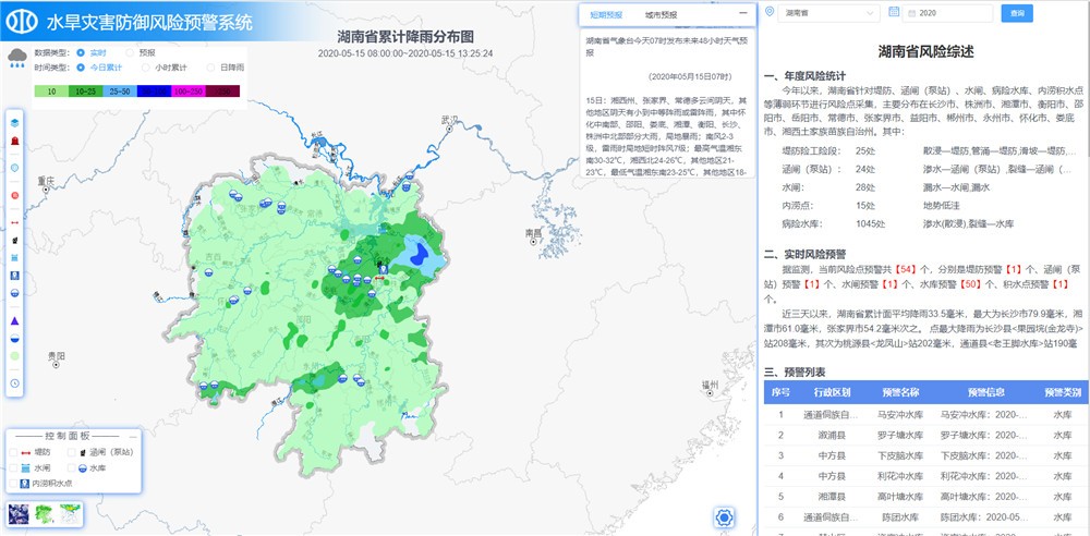 防汛風(fēng)險管理系統(tǒng),以城市防洪防澇、山洪防御、水庫防守、堤防巡查搶險為分析場景,通過實時雨、水情與經(jīng)驗(或率定)指標(biāo)閥值對比,提取并向值班界面及省、市、縣三級防汛責(zé)任人發(fā)送風(fēng)險預(yù)警提醒信息,跟蹤、收集預(yù)警落實、應(yīng)對處置等現(xiàn)場實戰(zhàn)信息,深度挖掘歷史數(shù)據(jù)及現(xiàn)有信息資源等數(shù)據(jù)的潛在價值,充分發(fā)揮知識經(jīng)驗對于防汛減災(zāi)工作的支撐作用,促進防汛抗旱應(yīng)急管理體系不斷完善,全面提升防汛減災(zāi)決策管理水平。